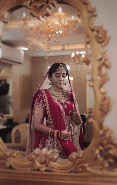 Elegant lehengas, bridal suits, shararas, gararas, and 5-meter suits with lehenga for every bride.